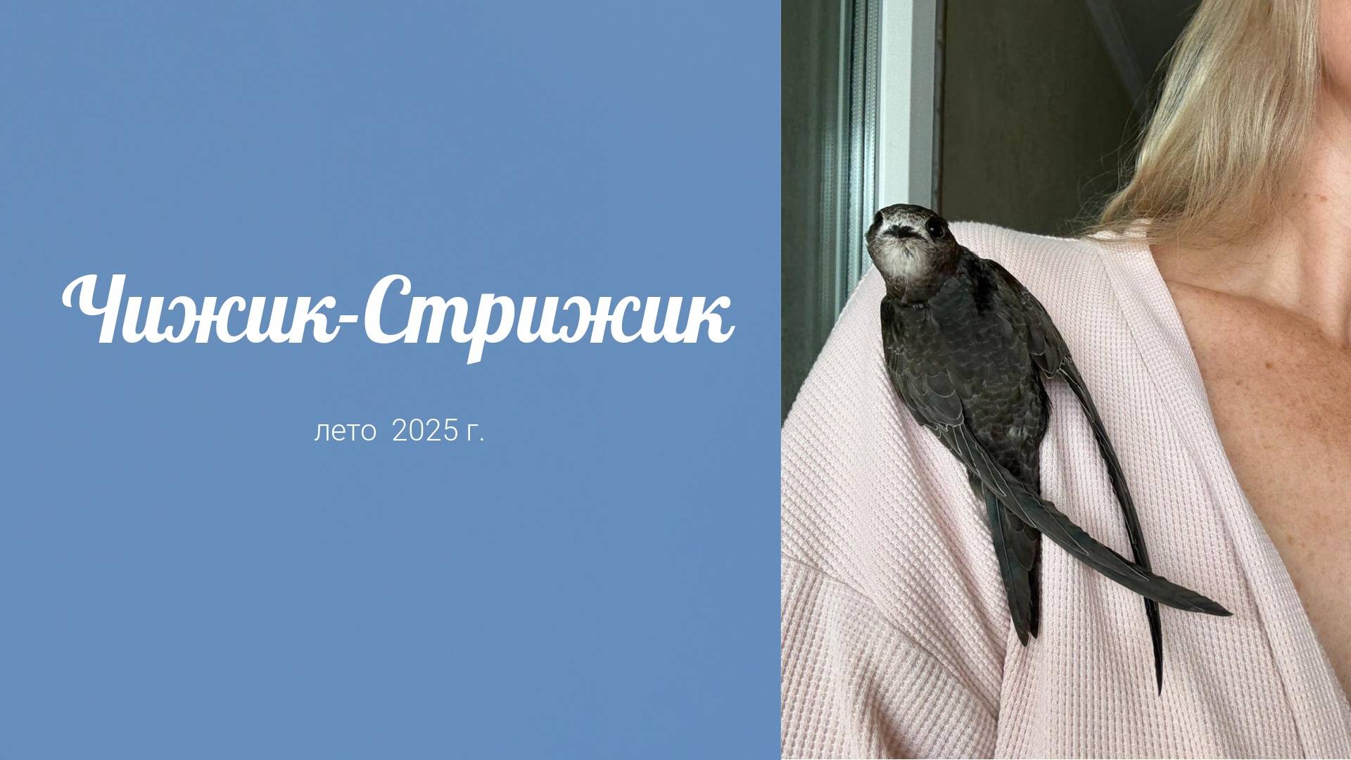 Видео о том, как этим летом мы подобрали выпавшего из гнезда птенца чёрного стрижа и выходили его.