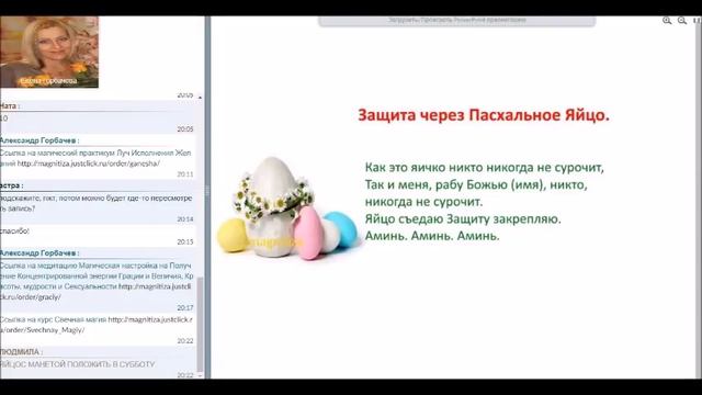 Посетите мой сайт https://magnitiza.ru/ e-mail: magnitiza@narod.ru Ссылка на консультацию http://magnitiza.justclick.ru/order/Podrobnyi Ссылка на курс Свечная магия http://magnitiza.justclick.ru/order/Svechnay_Magiy/ В чем поможет: +Пасхальные обряды на покупку жилья. +Убрать боль и подлечится. +Наладить отношения и найти любовь. +Улучшить материальное положение… Запись вебинара Елены Горбачевой.