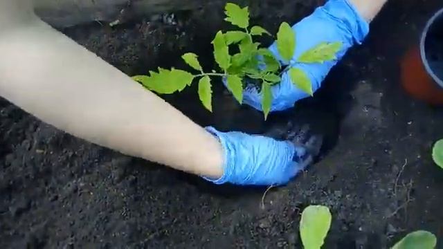 Высадка рассады томатов в теплицу.