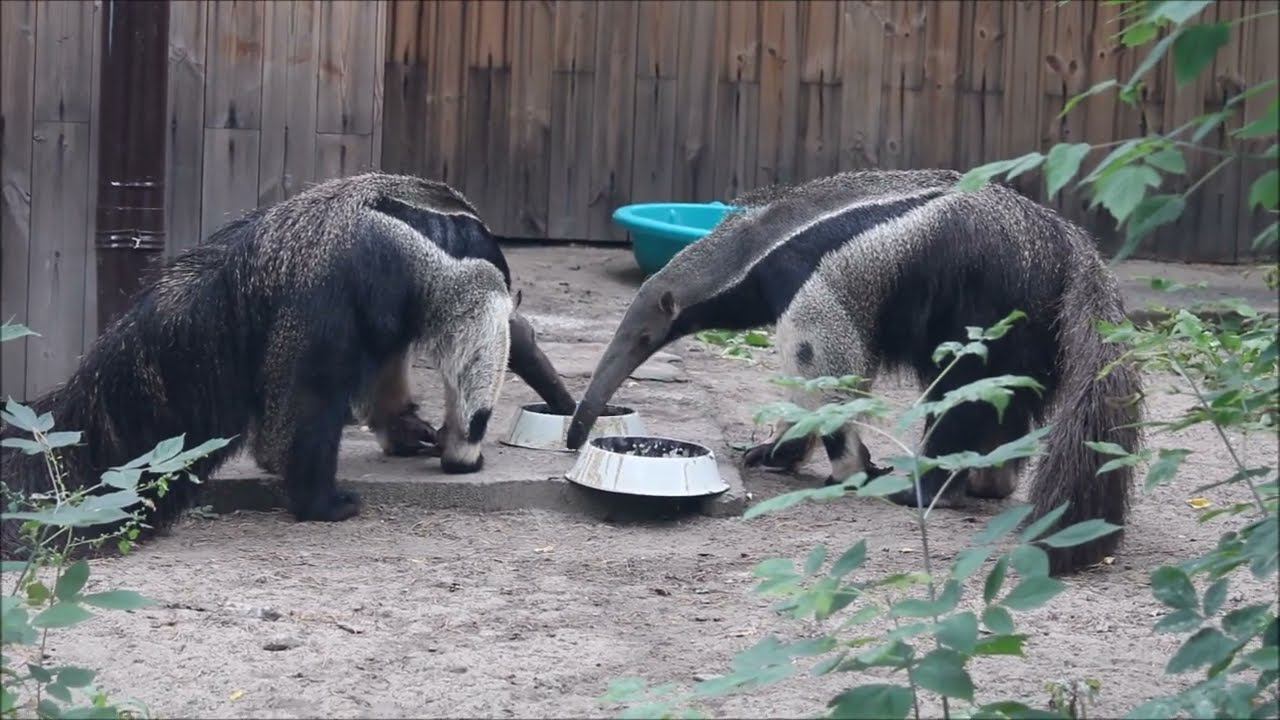Муравьеды Калле и Майя дружно кушают из одной миски 04.09.2023