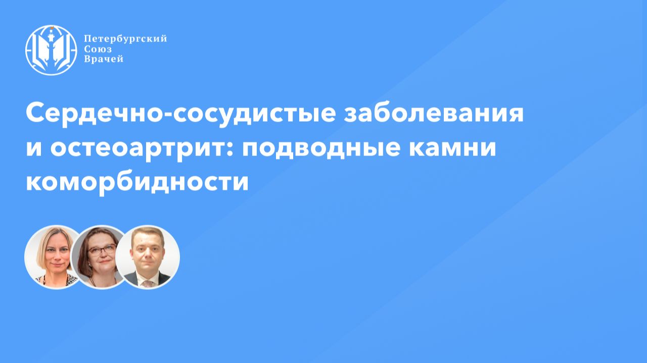 Сердечно-сосудистые заболевания и остеоартрит: подводные камни коморбидности Дата проведения: 21.01.2026, 20:00 Страница мероприятия: https://spb.doctor/i/260121/ Программа: 1. Сердечно-сосудистые заболевания и остеоартрит: подводные камни коморбидности Виллевальде Светлана Вадимовна, Котовская Юлия Викторовна, Наумов Антон Вячеславович 2. Движение – жизнь: устраняем препятствия Наумов Антон Вячеславович 3. Гиперурикемия у пациентов с сердечно-сосудистыми заболеваниями: тактика ведения Виллевальде Светлана Вадимовна, Котовская Юлия Викторовна 4. Ответы на вопросы О семинаре: Коморбидность сердечно-сосудистых заболеваний (ССЗ) и остеоартрита (ОА) - частое клиническое явление, особенно у пациентов пожилого и старшего возраста. Факторами риска являются возраст, ожирение, гиперлипидемия, а также патогенетические механизмы, включая эндотелиальную дисфункцию и системное воспаление, способствующие развитию и прогрессированию как ОА, так и ССЗ. В онлайн-семинаре будут обсуждены ключевые аспекты эпидемиологии, патофизиологии и клинического управления пациентами с сочетанной патологией, будут освещены актуальные проблемы диагностики и оптимизации лечения, а также междисциплинарные подходы к снижению риска сердечно-сосудистых осложнений у больных с ОА.