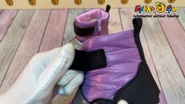 335145 Сапоги Pasito зимние на молнии и липучке с серебристыми деталями фиолетовые