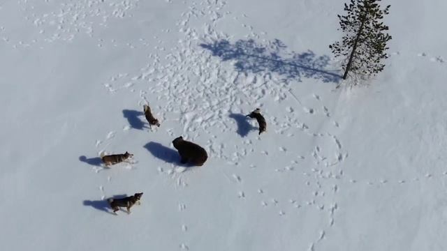 Работа собак по молодому медведю