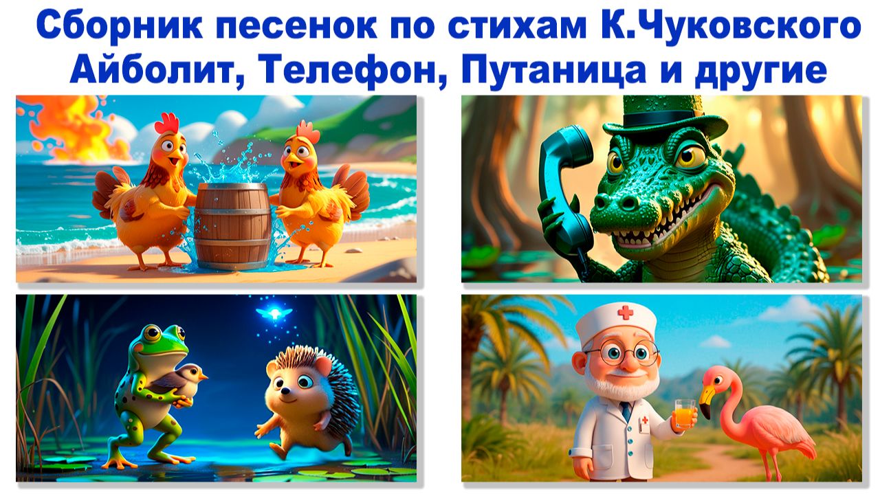 🎶 Сборник песенок для детей по стихам К. Чуковского 🌟 Айболит 🌟 Путаница 🌟 Телефон 🌟 Мультфильм