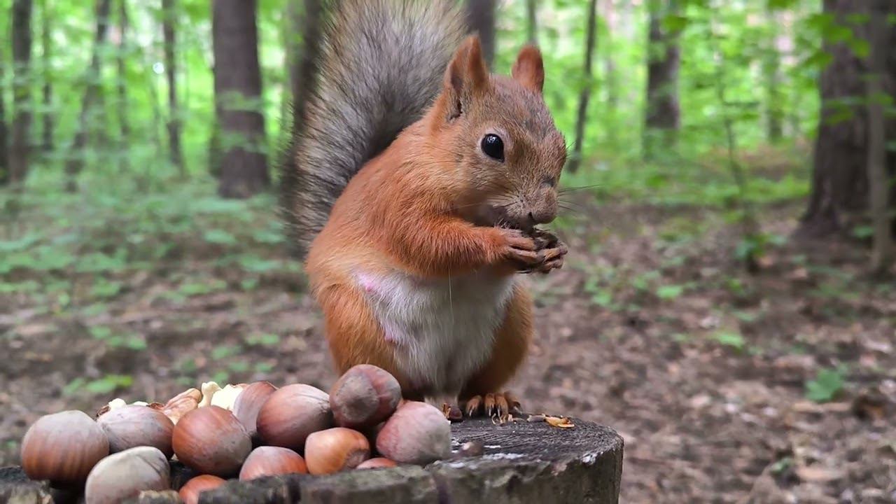 Белочка поела кедряшек и побежала прятать орехи