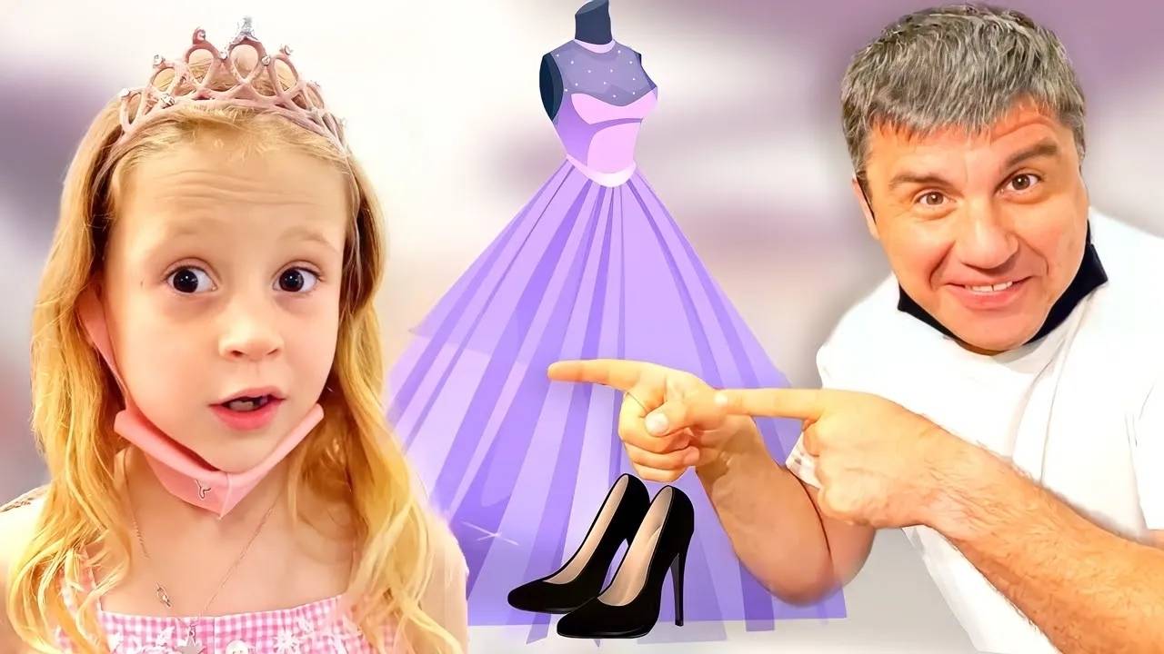 Настя сильно выросла и папа водит её по магазинам. История для детей.