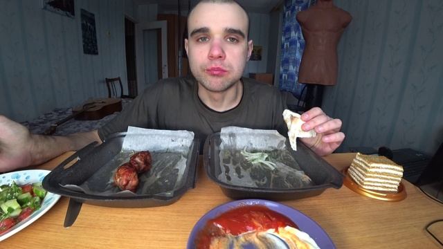 МУКБАНГ/АСМР ШАШЛЫК ИЗ СВИНИНЫ/КЕБАБ ИЗ ГОВЯДИНЫ/САЛАТ/СОУС/и МЕДОВИК / EATING/ASMR/Mukbang #331