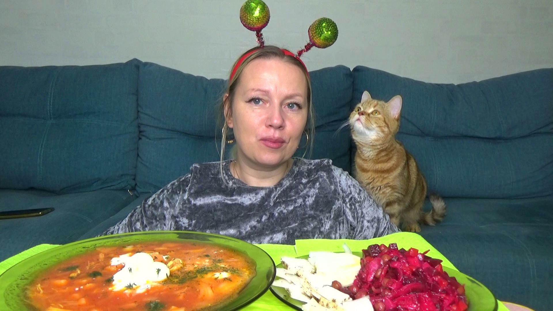 Мукбанг солянка вкуснятина, винегрет, сало. Еда.