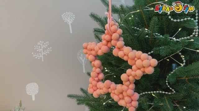332395 Елочное украшение Венок-звезда бархатная матовая пудровая 15см