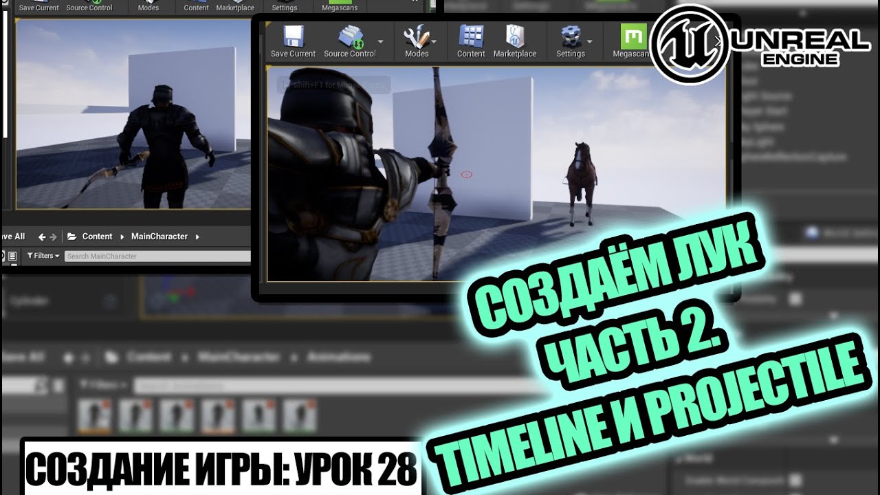 ПРИЦЕЛ и СТРЕЛЬБА из лука (Часть 2 - TimeLine и Projectile) - Создание игры в Unreal Engine.Урок 28
