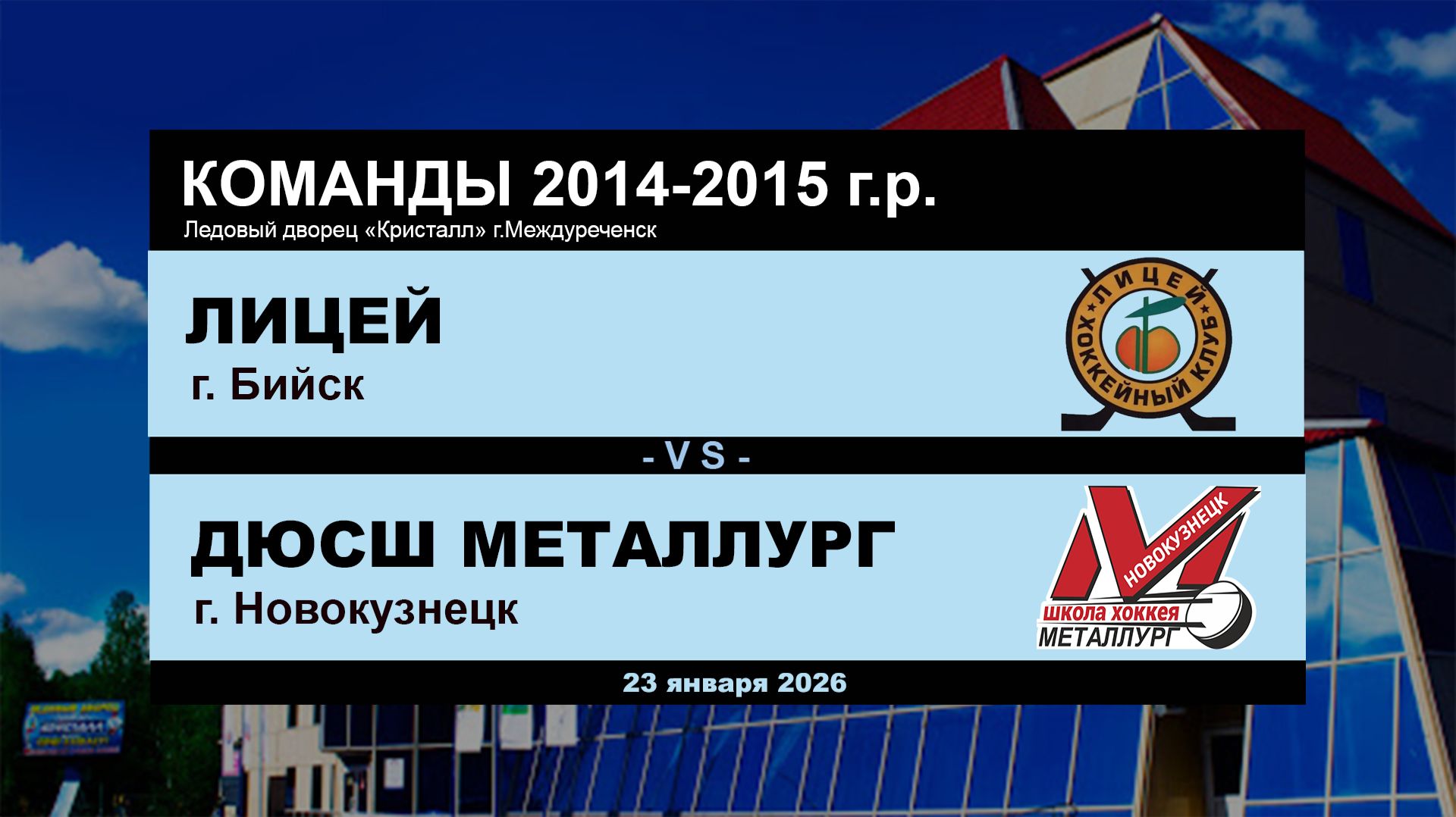 Хоккейная игра 23.01.2026 г. Команды 2014-2015 г.р. Бийск - Новокузнецк Ледовый дворец "Кристалл" #Междуреченск #Лицей #ДЮСШ