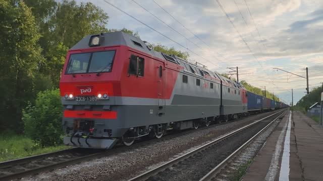 2ЭС6-1380 с быстрым сдвоенным контейнерным грузовым и прыгающими контейнерами | БМО 309 км