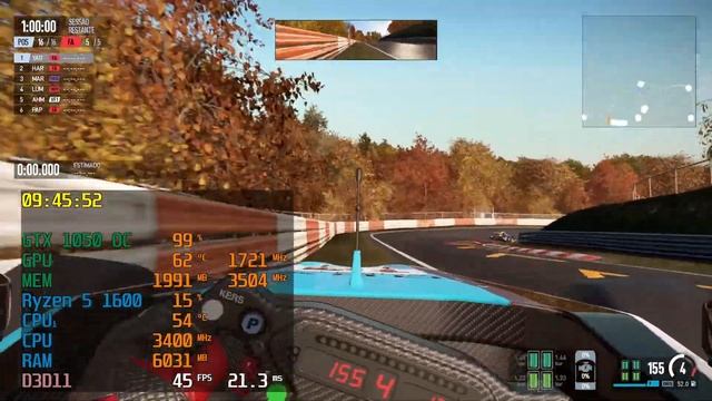Project CARS 2 NVidia Driver 425.31 Ryzen 5 1600, 8 GB RAM DDR4 Dual Channel HyperX Fury, SSD WD 240GB (Jogo Instalado), SSD Gigabyte 120GB, SSD 30GB Intel Não alocado, HD 1 TB, Placa de Vídeo Gigabyte GeForce GTX 1050 OC Windforce 2 GB