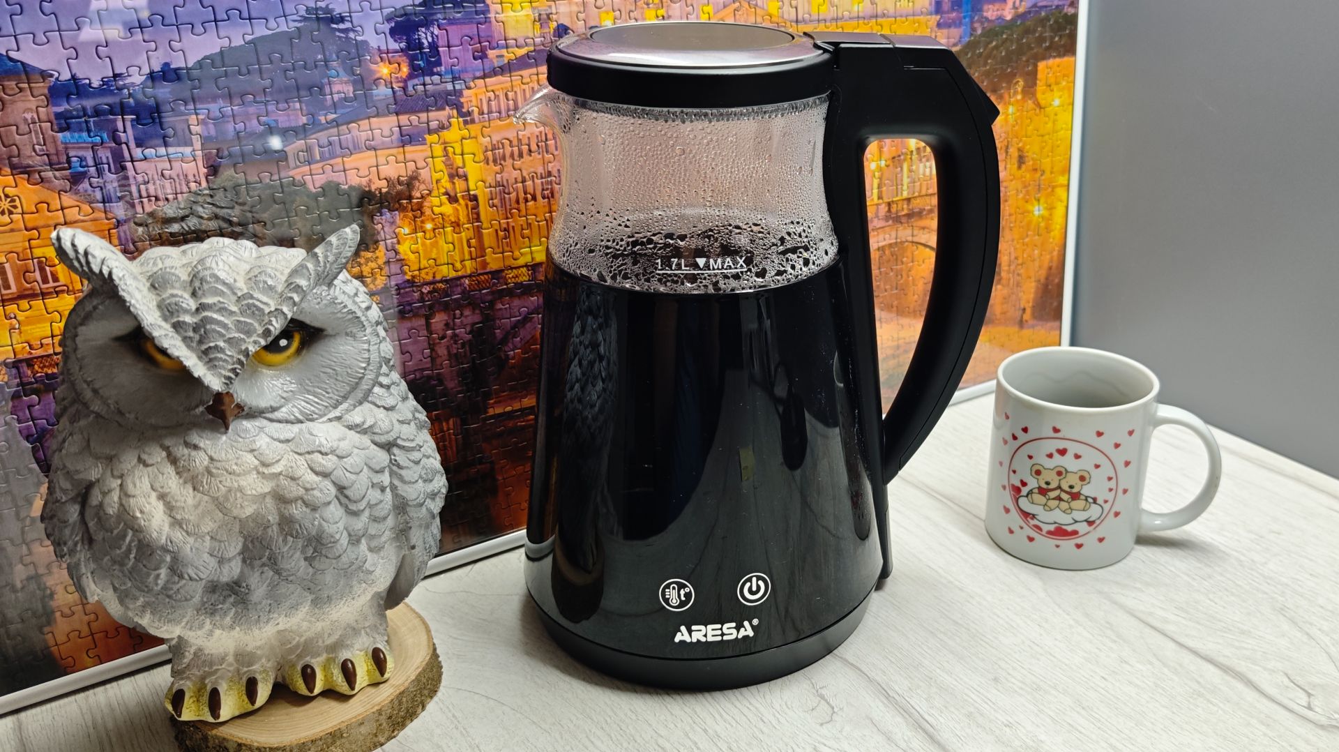 Электрочайник Aresa AR-3463 - нагрев 1,7 л воды (полный) с фиксацией измерительными приборами (ваттметр, мультиметр, шумомер).