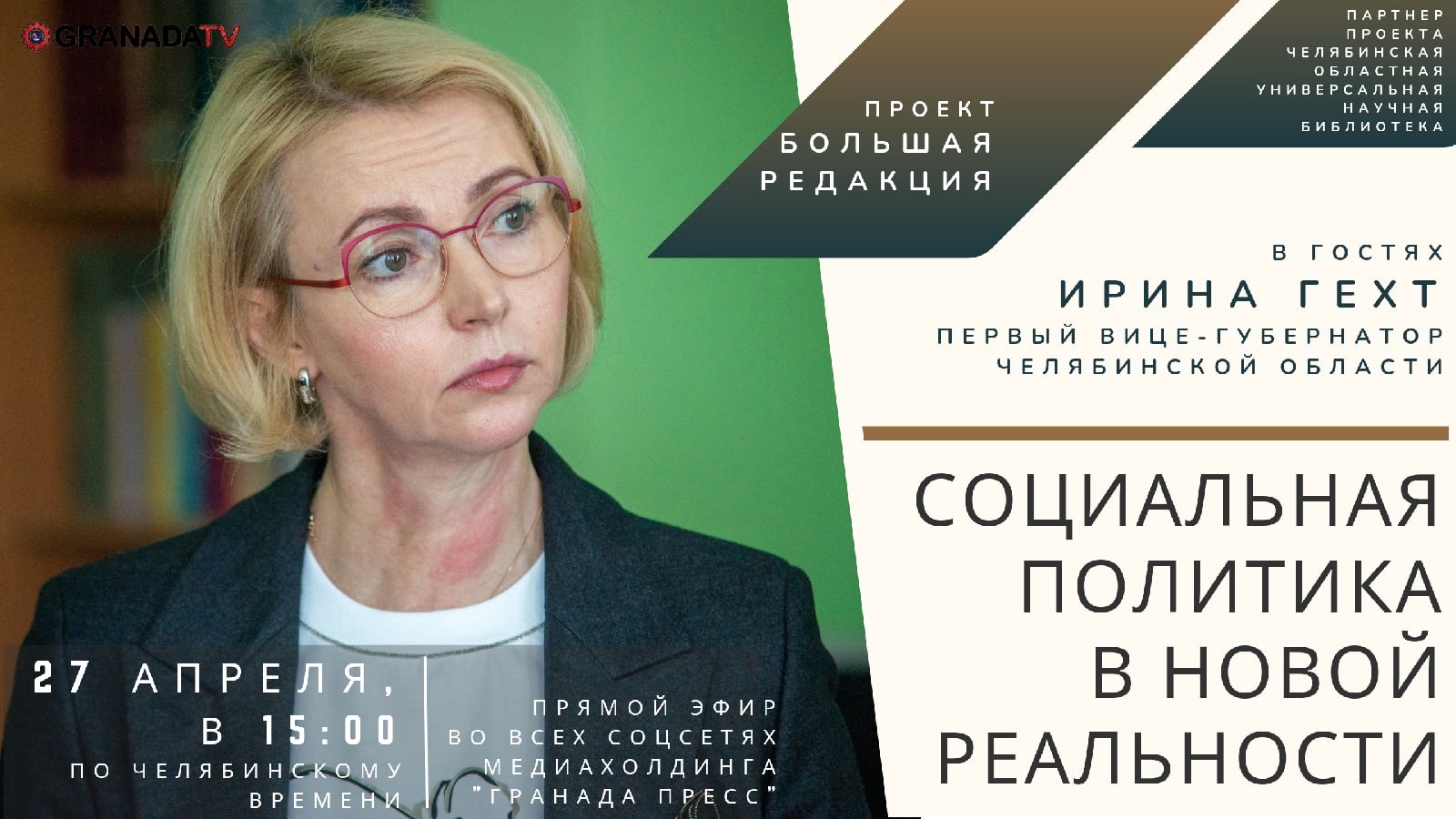 Проект «Большая редакция», гость программы Ирина Гехт, первый вице-губернатор Челябинской области. Что изменится в социальной политике из-за санкций? #ИринаГехт #социалка