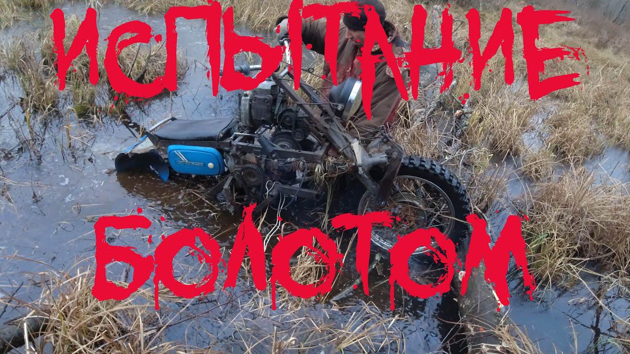 Мото 2х2 второе испытание болотом, мотоцикл плохо работает, согнул заднюю звезду.