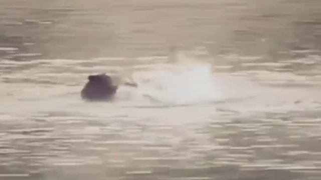 Мишка с трудом, но всё таки притопил медведя. Будет ужин и для него и для его медведицы