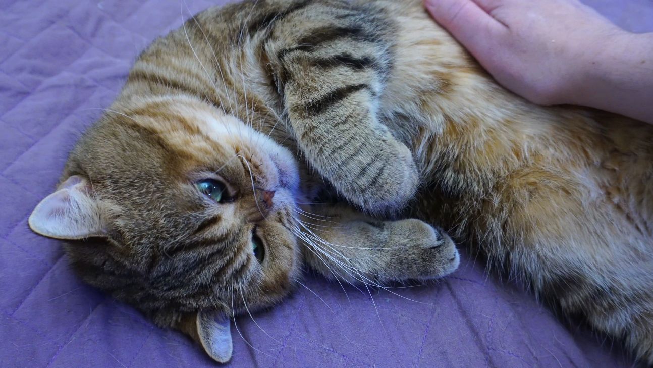 Наблюдайте за милыми моментами, когда кот лежит на фиолетовом одеяле, получая ласку. Это видео демонстрирует поведение кошки и как владелец кошачьей любви проявляется через реакции на нежные прикосновения. Посмотрите, как меняются выражения и язык тела кошки. Мой ласковый и нежный зверь!