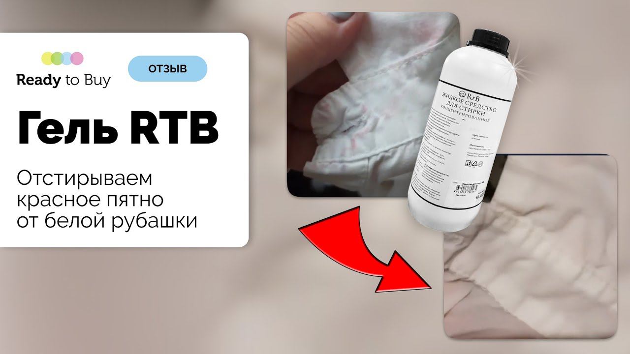 Отстирываем красное пятно от белой рубашки гель для стирки RTB