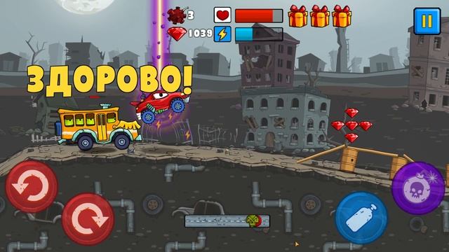 Плейлист игры - https://clck.ru/aeutX Car Eats Car — симулятор гонок для Андроид, в котором не нужно соблюдать правила на пути к победе. Игра сделана в стиле триал — двумерная, от третьего лица, с кнопочным управлением и продуманной игровой физикой. Задача пользователя — добраться до финиша, набрав за уровень во время погони максимум очков, которые начисляются за эффектные разрушительные трюки.