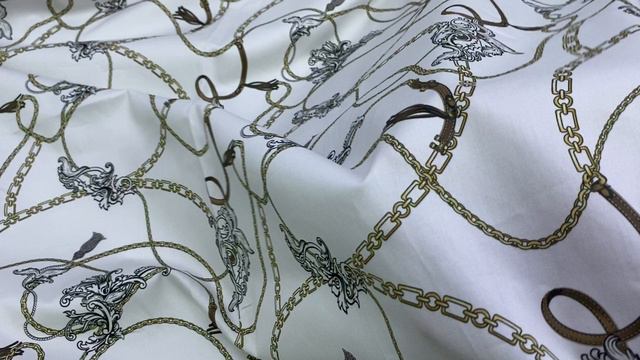 Хлопок белого цвета с принтом золотые цепи , пряжки 16959