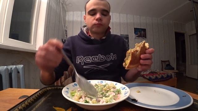МУКБАНГ. Еда. Ем пирог и оливье. Еда на камеру. Вкусно. Завтрак. MUKBANG #19