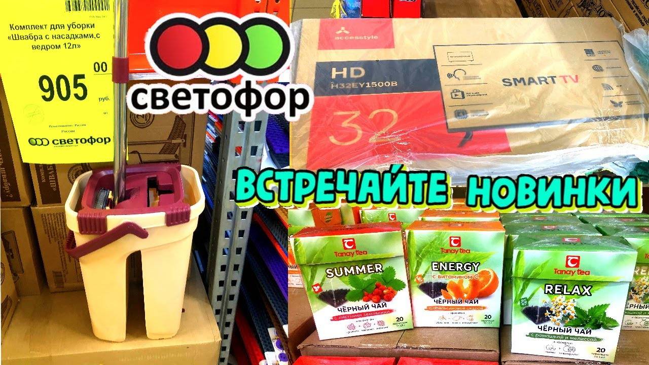 В магазине СВЕТОФОР НОВИНКИ Привезли телевизоры, швабру с отжимом, вкусный чай. Очень ДЁШЕВО! ОБЗОР