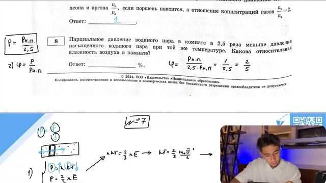 Парциальное давление водяного пара в комнате в 2,5 раза меньше давления насыщенного водяного - №