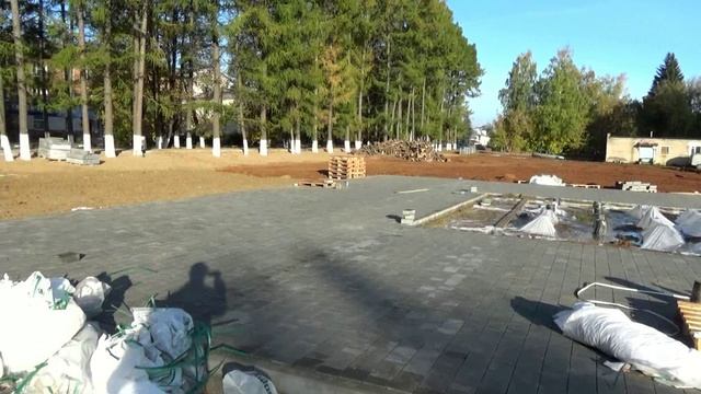 Строительство сквера в городе Вязники у Комсомольской улицы. Съемка 26.09.2023