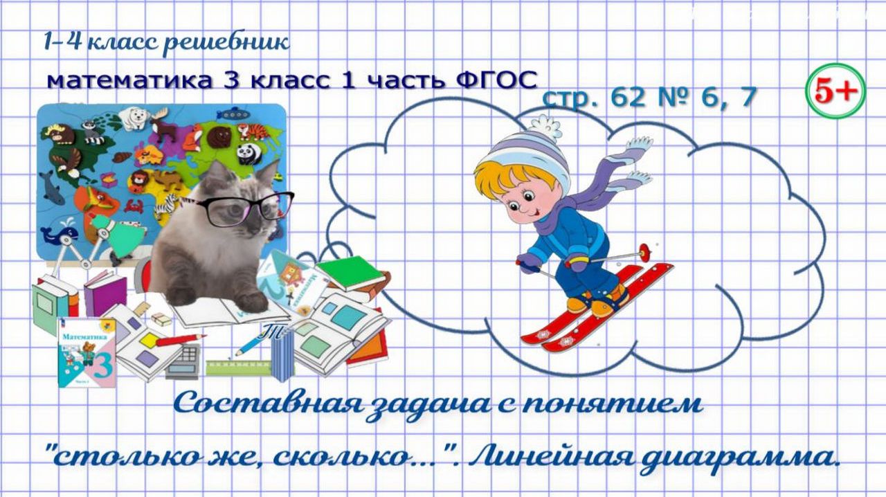 Стр. 62 № 6, 7 задача с понятием "столько же", линейная диаграмма математика 3 кл 1 часть ФГОС 2023