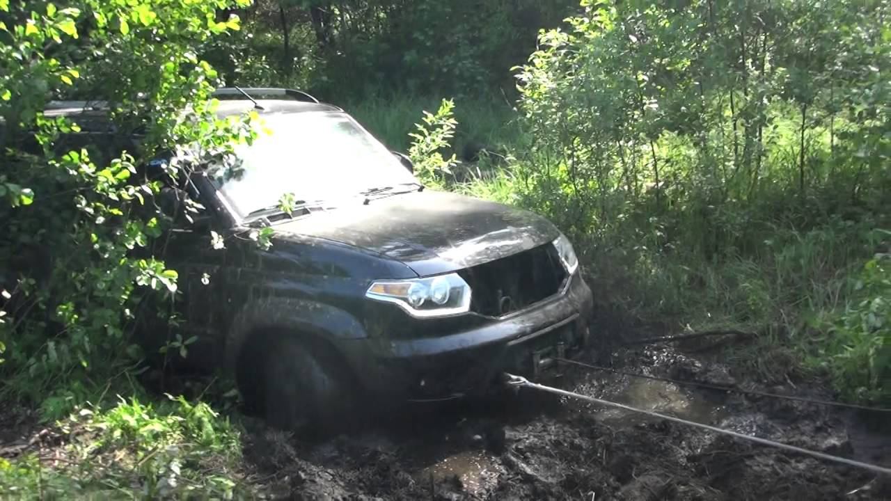 Достаем Уазик лебедкой