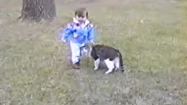 Кошка прикалывается над ребенком