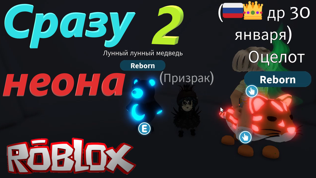 Режим игры - Adopt Me Заходим в адопт! Мне наконец-то удалось докачать легендарного Лунного медведя до фулл роста, четыре штуки и теперь я могу сделать неон в пещере, а также мой тиммейт прокачал четыре новых питомца - Оцелота. две неонки в одном видео! Приятного просмотра! Плейлист: Roblox - https://studio.rutube.ru/playlist/256305 Дискорд канала Many Lives - Много Жизней!: https://discord.gg/xMMYunkn96 Канал на Яндекс-Дзене: https://zen.yandex.ru/id/62b3422364474262957a1ed7 Канал-Ютуб: https://www.youtube.com/channel/UCdl63_gcrRXWv7XE2ap5mQw Канал на Бусти - https://boosty.to/manylives Если Вы хотите поддержать канал, то ниже есть номер карты. Даже на 20 рублей можно купить хлебушек. Никому ничего не навязываю, донат - дело сугубо добровольное. Спасибо за помощь❤ Сберкарта - 4279 3806 8658 9054 Инициалы: Б. О. С.