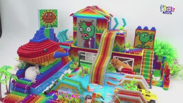 Магнитные шарики - Постройте Аквапарк Shark Water Park С детской площадкой И Гигантским Бассейном Из
