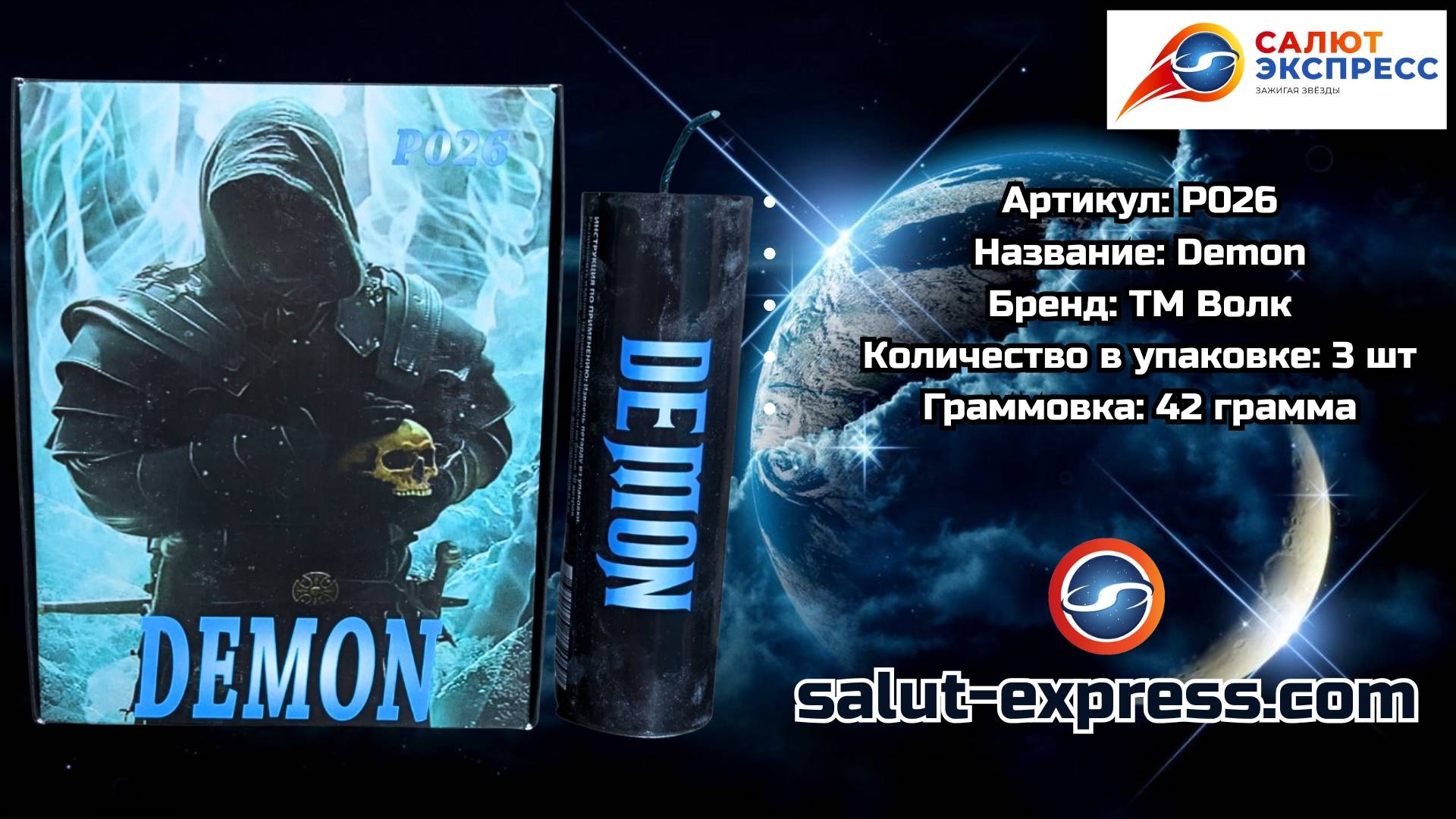 P026 Demon | мощная петарда (42 г, 1 и 3 шт.) | ТМ Волк