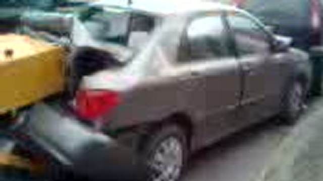 Каток увлекся и укатал заднюю часть автомобиля, почти всмятку.