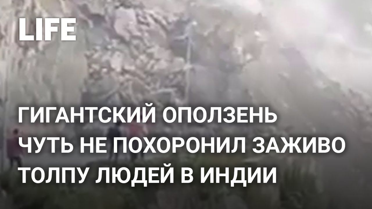 Жители Индии едва не погибли, снимая схождение оползня