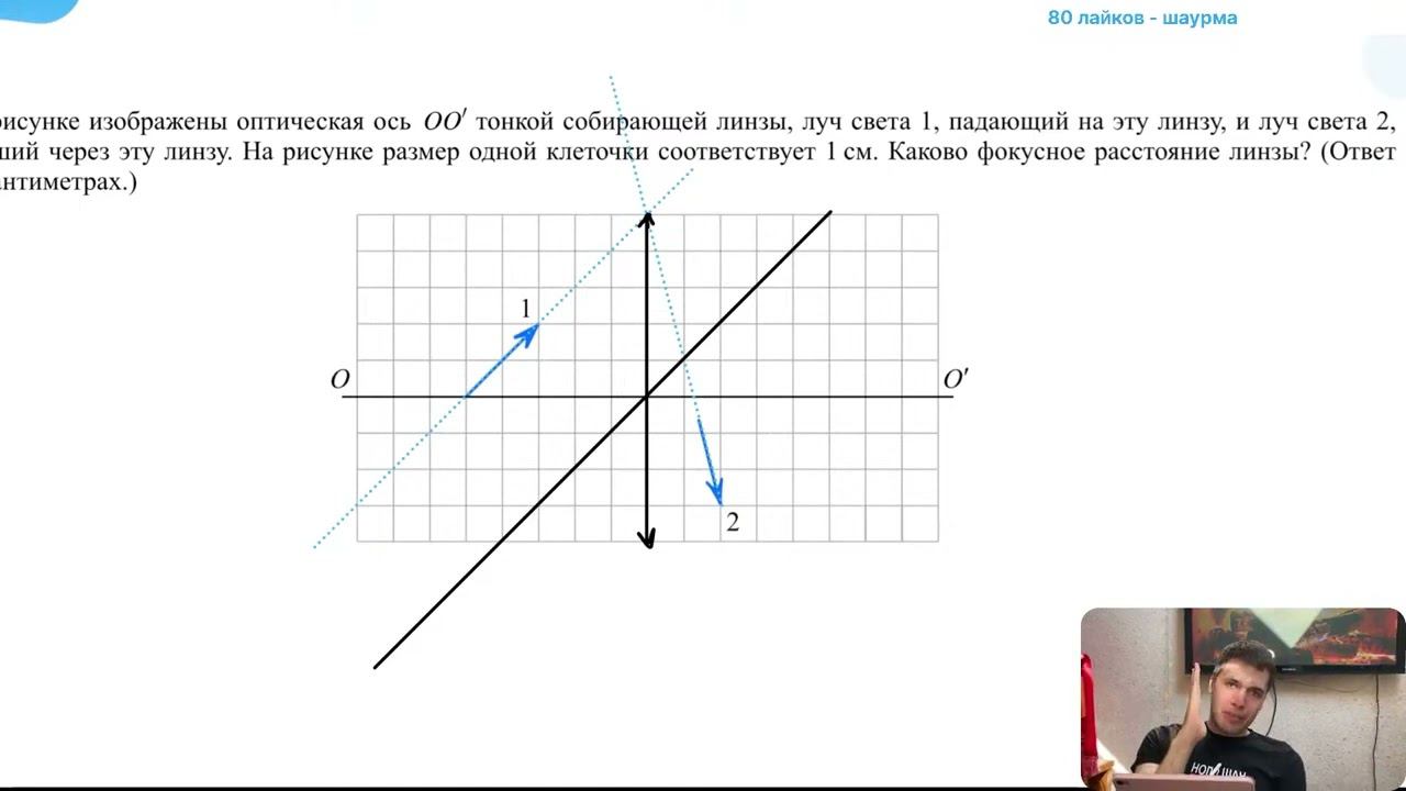На рисунке изображены оптическая ось ОО' тонкой собирающей линзы, луч света 1, падающий на - №28372