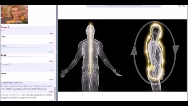 Посетите мой сайт https://magnitiza.ru/ e-mail: magnitiza@narod.ru Ссылка на консультацию http://magnitiza.justclick.ru/order/Podrobnyi Каждый понедельник бесплатные вебинары в 20-00 Москвы Ссылка на комнату https://elena-gorbacheva.myownmeeting.net/login?lang=RU Можно входить не через ссылку, а через сайт https://magnitiza.ru/ в меню выбрать пункт ВЕБИНАРЫ. Упражнение: Снять энергетическую блокаду позвоночника — освободить его от «пробок». Фрагмент вебинара Елены Горбачевой.