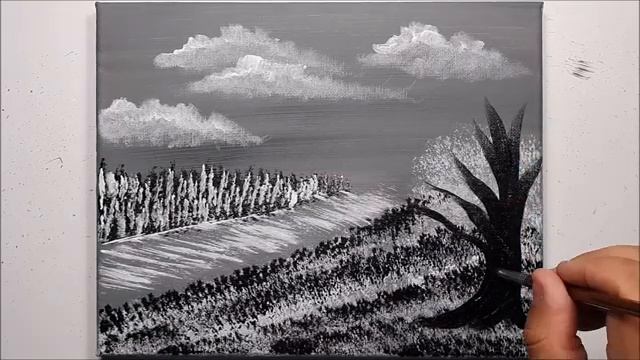 СИНИЙ ЧЕРНЫЙ И БЕЛЫЙ - Рисования на холсте Акриловой краской! Развивающие видео для детей и родителе