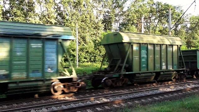 Электровоз ВЛ80Т-1387 с грузовым и электропоезд ЭД9М-0060 на перегоне