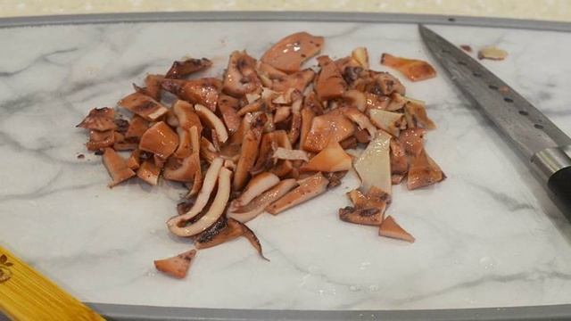 Салат из кальмаров, крабовых палочек и красной икры. Вкусный и незамысловатый, приготовленный из доступных ингредиентов, - он прекрасно подойдет и к праздничному, и к ежедневному столу. Ингредиенты: Кальмары200 грамм, Крабовые палочки100 грамм, Яйцо куриное вареное2 штуки, Капуста150 грамм, МайонезПо вкусу, СольПо вкусу, Благодарим за просмотр! Подписывайтесь на канал🍕 Поделитесь своим мнениенм о рецепте в комментариях!