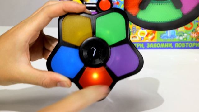 Следите за тем, в каком порядке загораются кнопки, а затем правильно повторите последовательность загоравшихся цветов! Каждая кнопка имеет уникальный звук. Нажмите центральную кнопку, чтобы начать игру. Следите за тем, в каком порядке загораются кнопки, затем правильно повторите последовательность загорающихся цветов. С каждым разом последовательность световых сигналов увеличивается. При правильном повторении вы услышите музыку. Если Вы ошиблись, звучит гудок. Отличная игра, тренирующая память. Для работы необходимы две батарейки АА.