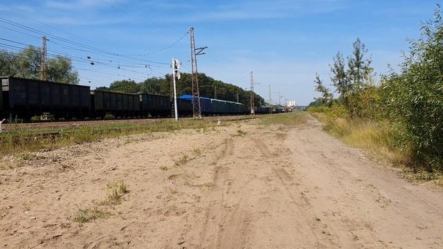 5 августа 2020 года в 9:48 станция Рязань 1 Московская железная дорога электровозы 2ЭС6 депо Челябинск, следуют на длинном плече до Рыбного 2ES6-618+590 with a freight train at the weekend arrows of Ryazan station August 5, 2020 at 9:48 Ryazan 1 station Moscowskaya railway electric locomotives 2ES6 depot Chelyabinsk, follow on the long shoulder to Fish