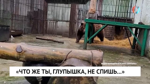 Пробуждение по ошибке. В Большереченском зоопарке медведица вышла из спячки.