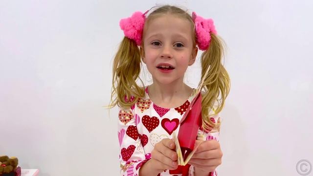 Настя дарит подарки своим друзьям на День святого Валентина.