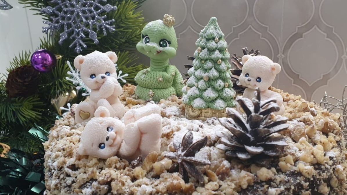 Спасибо, что заглянули.🤗За лайк и подписку, Благодарю!💖 До свиданья год Змеи! Здравствуй, Лошадь!🎄🐎 🎄Пусть в Новый год реальным станет чудо, К тебе придут герои добрых сказок, Вдруг подобреет даже Чудо-юдо, А царь Кощей предложит дружбу сразу! Пусть самобранка-скатерть наготовит Тебе прекрасных, вкусных угощений, Корабль летучий для тебя пригонят, Чтоб полететь в мир счастья, приключений!🎄 🎄Красивый праздничный торт можно не только купить в дорогой кондитерской, но и приготовить самостоятельно.🤗 Праздничный торт 🥮главное действующее лицо🎄праздничного чаепития🍵🍷, это один из наилучших и приятнейших знаков внимания к близким, друзьям...🤗 🎄🤗ИНГРЕДИЕНТЫ: Мука в/ сорт - 250 г. Разрыхлитель Cykoria S.A. - 10 г. Сахар - 300 г. Сливочное масло 82,5% - 250 г. Яйцо C1 - 3 шт. Экстракт натуральной ванили - 5 капель Соль - чуть чуть Цедра лимона - 1 ч.л. Абрикосовое варенье - 150 - 200 гр.(любое, какое Вы любите) Коньяк - 1 стол.ложка Грецкий измельченный орех - 200 гр. Шоколадные фигурки мини змейка и ёлка, мини мишки - 230 гр. Сахарная пудра - 60 гр. 🤗🎄Шоколадная глазурь без сахара: Натуральное кусковое какао - 200 гр. (или 200 гр. вашего любимого шоколада) Сливки 33 % - 200 гр. Смесь стевия и эритрит - 8 гр. Дно формы для выпечки (диаметр - 22 см) устилаем пергаментом. Затем и дно, и бока смазываем растительным маслом. В форму выливаем тесто растягивая тесто к бокам, чтобы не было слишком высокой "шапки". В разогретую до 170 -180 градусов духовку отправляем форму и печем 60 - 70 минут (готовность проверяем шпажкой - на ней не должно быть мокрого теста). Приятного аппетита! Готовьте с удовольствием! Радуйте своих родных и близких! 🏡До скорых встреч! 🤗ПОДДЕРЖАТЬ КАНАЛ МОЖНО ПО ССЫЛКЕ: ✅Донат в поддержку канала: https://yoomoney.ru/to/4100118611379120 ✅Поддержка на карту Сбер: 2202 2036 3844 8375 ✅Поддержка на карту Ozon: 2204 3201 0933 4872 Все средства пойдут на развитие канала. Спасибо!🌞