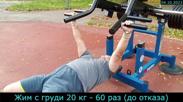04.10.2023 - Жим с груди 20 кг - 60 раз (до отказа)