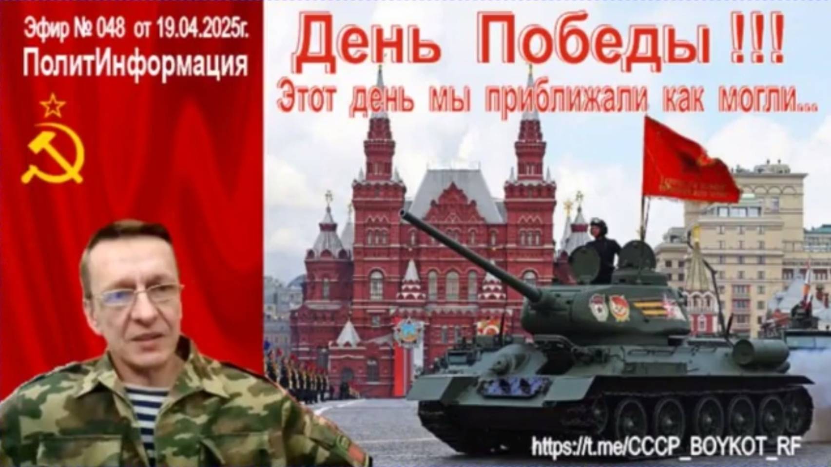 ПолитИнформация: 🎯День Победы в 21:30 - живые эфиры 🎤 в основном чате @QRBOYKOT или на канале https://t.me/CCCP_BOYKOT_RF