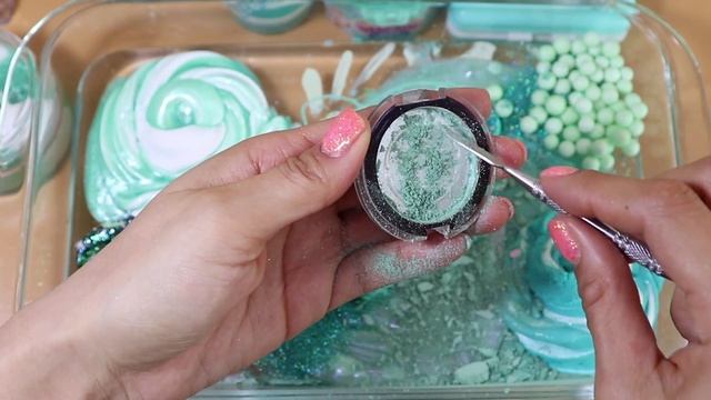 Слайм «Один цвет»!Смешиваем «мятный» макияж, другие ингредиенты, фиджеты и шоколадную слизь в слайм!